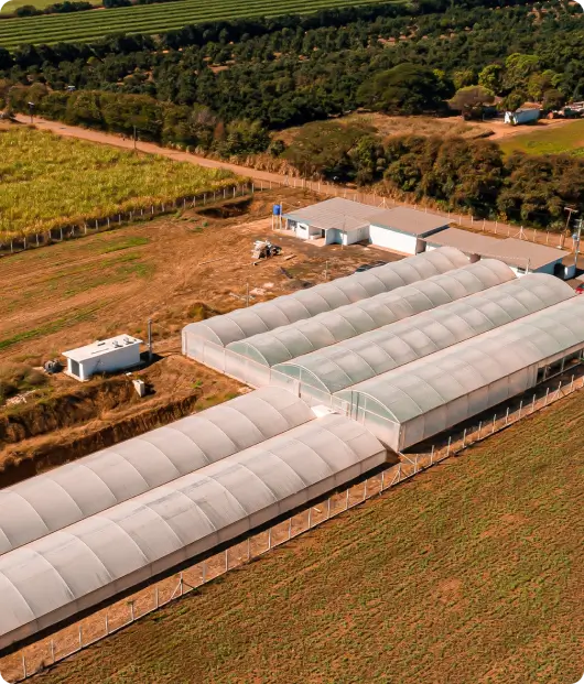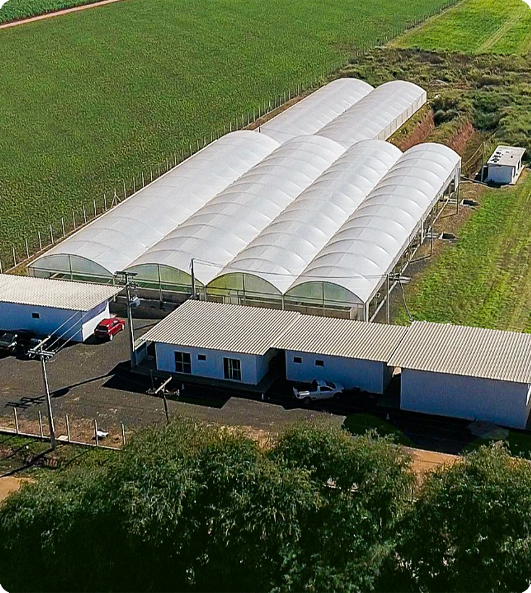 Nosso projeto é verticalizado e utiliza tanques construídos em concreto cobertos por estufas para proteção do meio ambiente e manutenção da temperatura adequada, para o cultivo dos camarões.